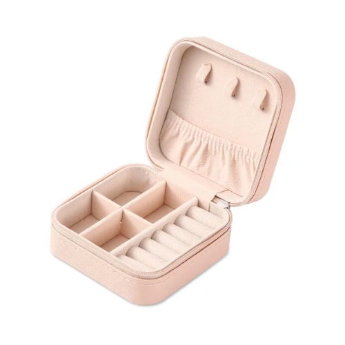 Pink Travel Sized Leather Jewelry Box